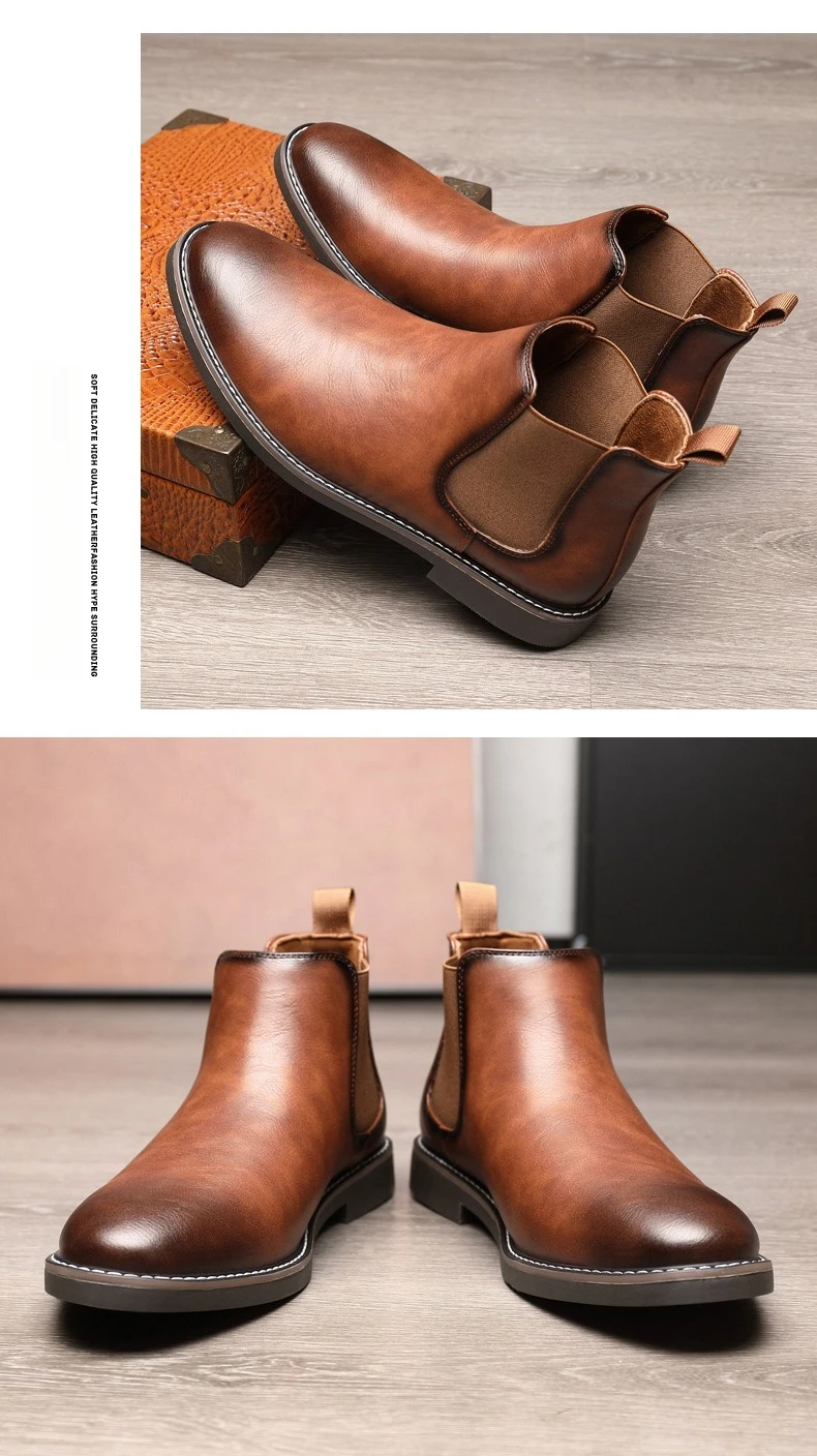 Men's Chelsea Boots Luxury High Quality Men Leather Boots Fashion British Style High Top Men Shoes Comfort Business Ankle Boots