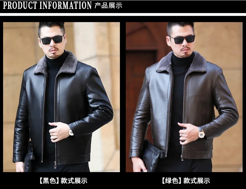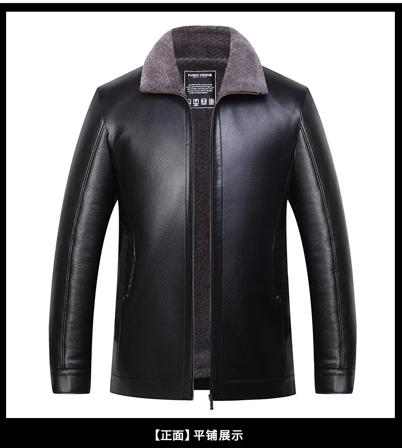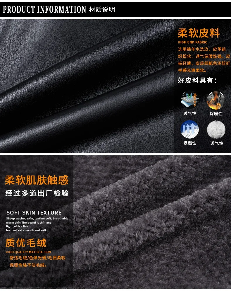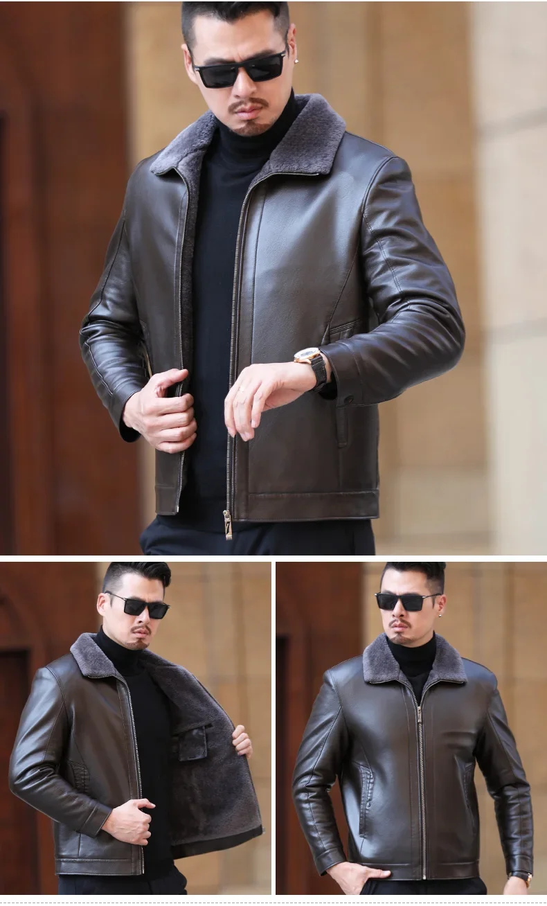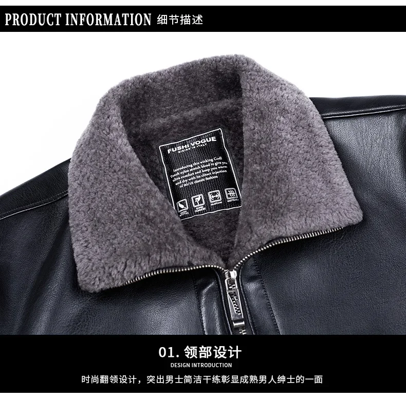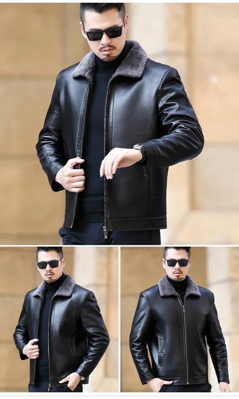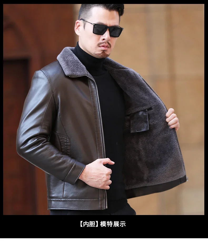 Men's Fur One Casual Thickened Motorcycle Jacket Mens Fashion Leather Jacket Male Plus Cashmere Sheep Leather Jacket Short Coat
