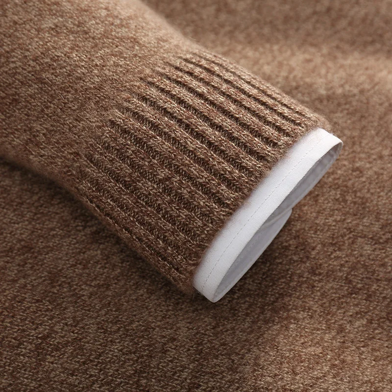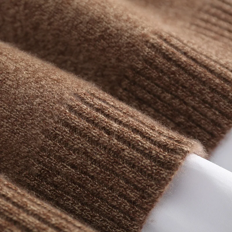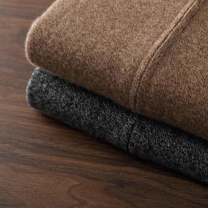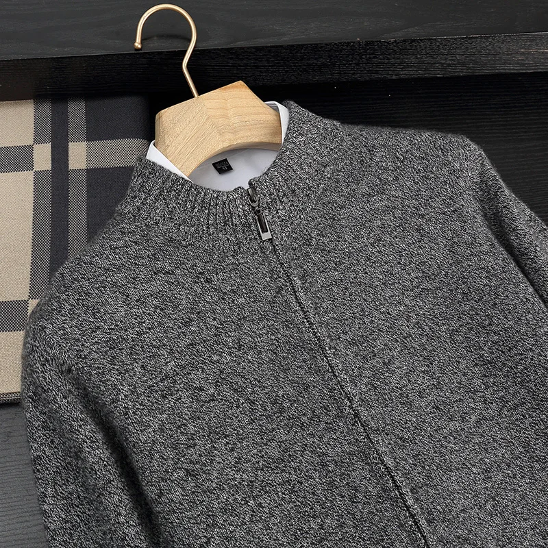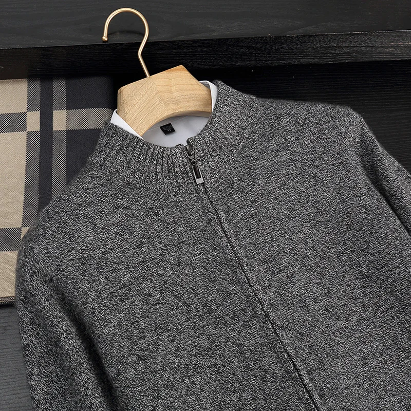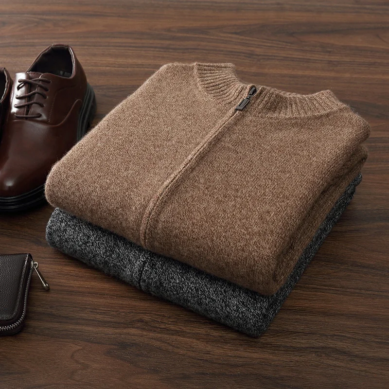 Lyxig herrtröja i 100 % kashmir med hög halsringning, långärmad dragkedja, kofta, vintertjock kappa, smart casual, stickade toppar i kashmir