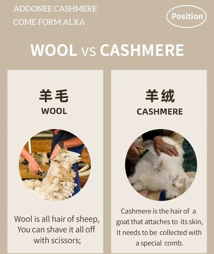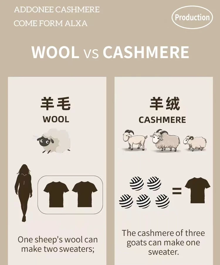 Kashmir kallas mjukt guld, vilket är getens första dun. Utan några skarvar är det mjukare och varmare än ull.