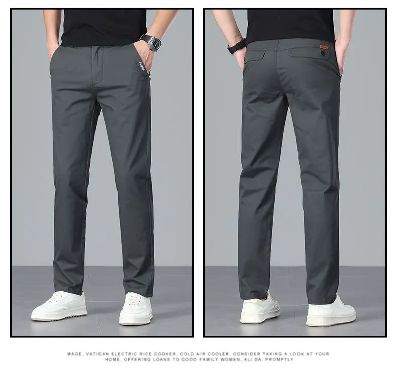 Men's casual pants 2025 New Spring and autumn casual straight business outdoor workwear thick cotton-like long pants
