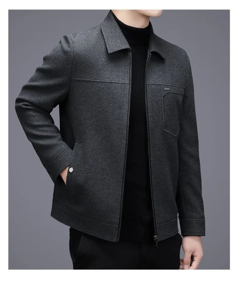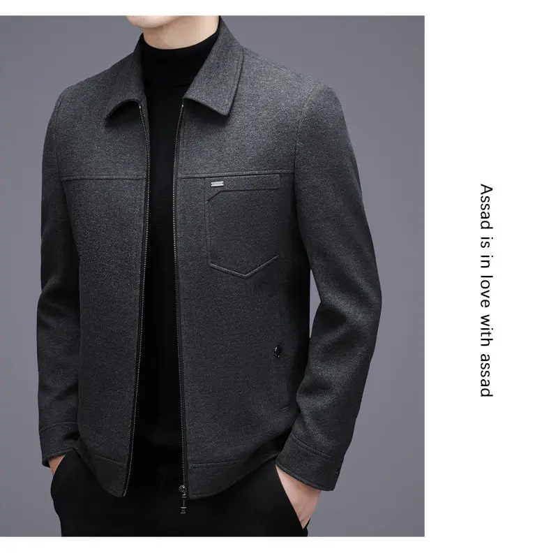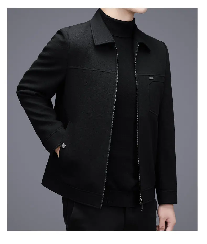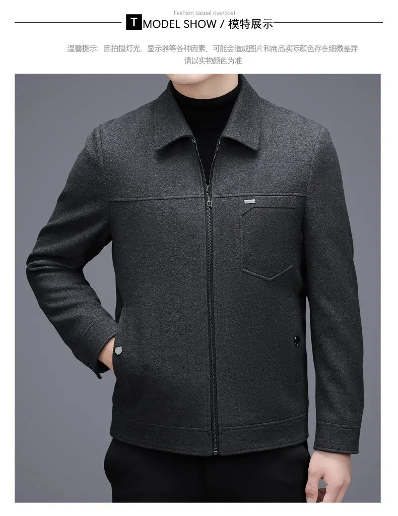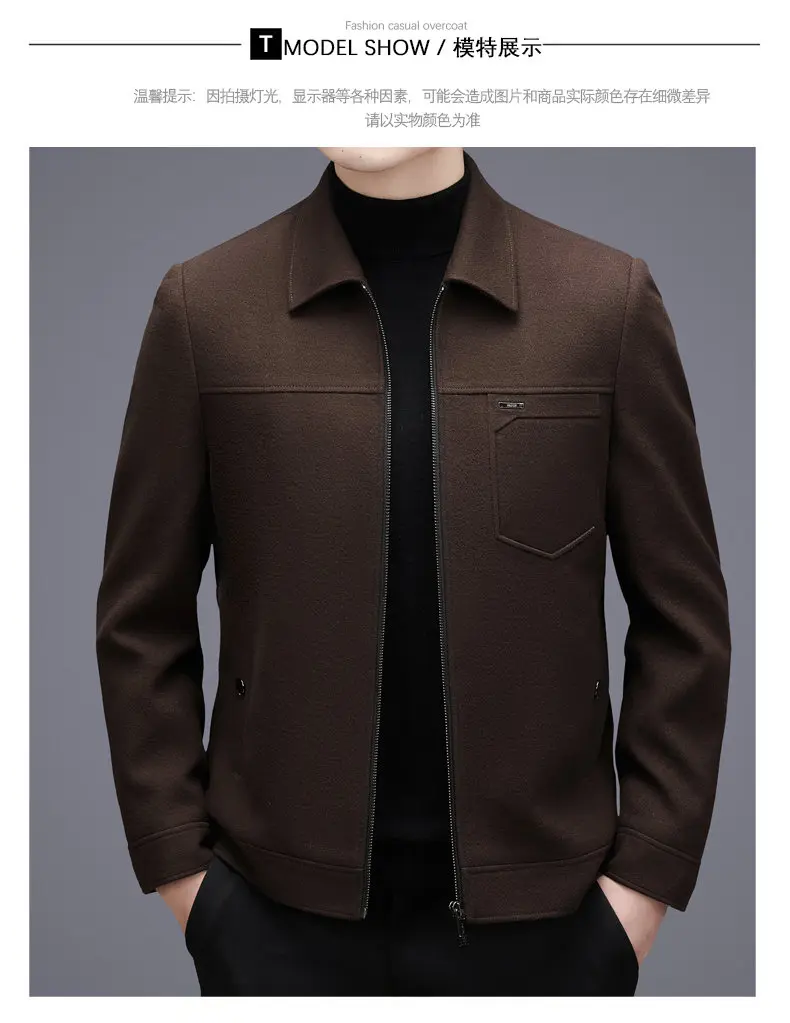 Men's woolen jacket, fashionable short style for middle-aged men's autumn and winter, lapel wool warm coat, thickened top for da
