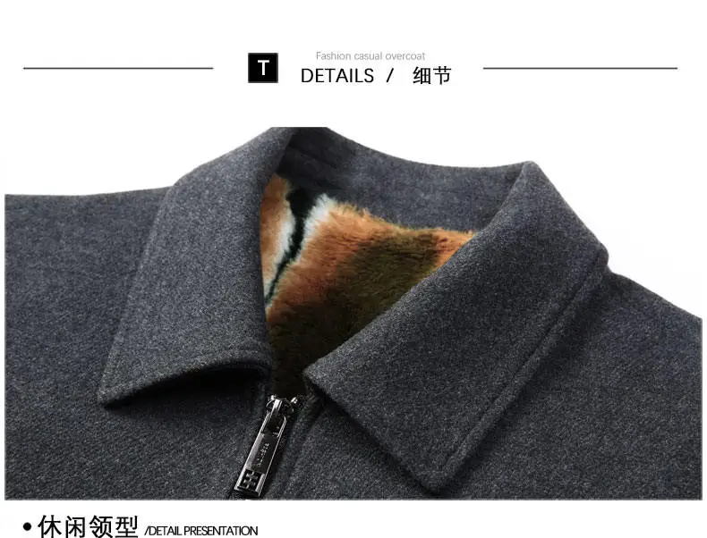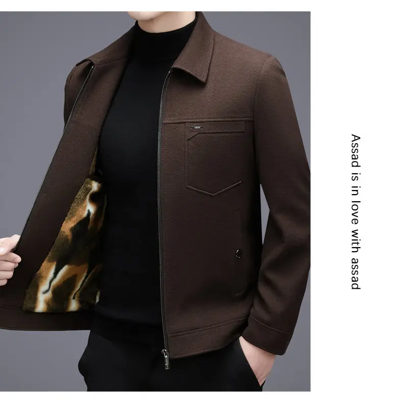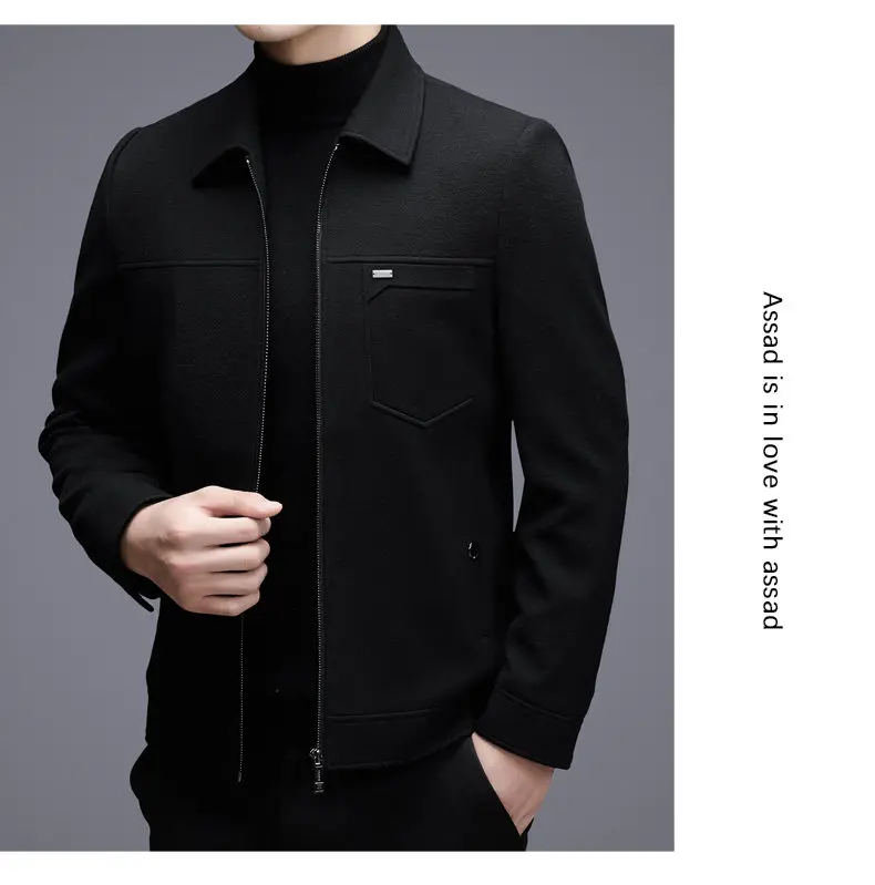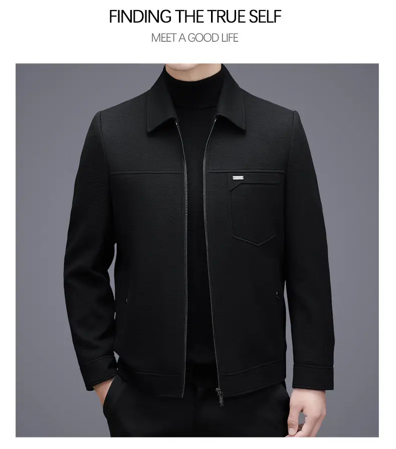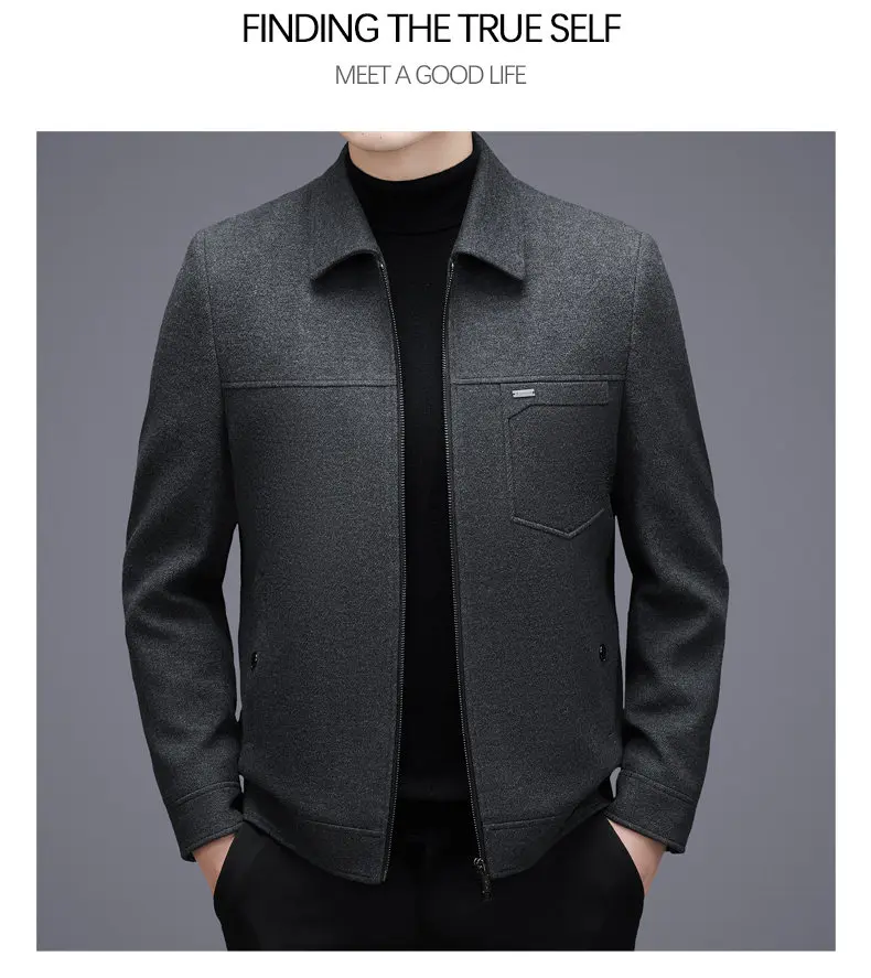 Men's woolen jacket, fashionable short style for middle-aged men's autumn and winter, lapel wool warm coat, thickened top for da